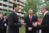 Негово Превъзходителство Джеймс Уорлик, зам.-министъра на културата Тодор Чобанов и областният управител Иван Тотев инспектират работата по реконструкция на Малката Базилика в Пловдив