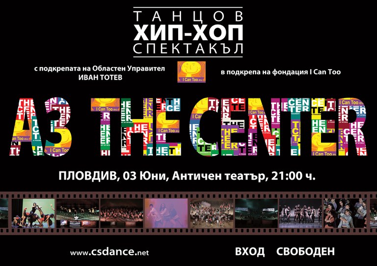 За втора поредна година атрактивните хип хопъри казват: И АЗ МОГА / I Can Too и избират да подкрепят инициативата за подпомагането чрез събирането на средства за изграждането на център за деца, болни от аутизъм именно в град Пловдив. В начинанието подкрепа получават и от Читалище „Антим I“, където танцьорите от Пловдивския “The Center” усилено тренират и подготвят изненади за предстоящия спектакъл.