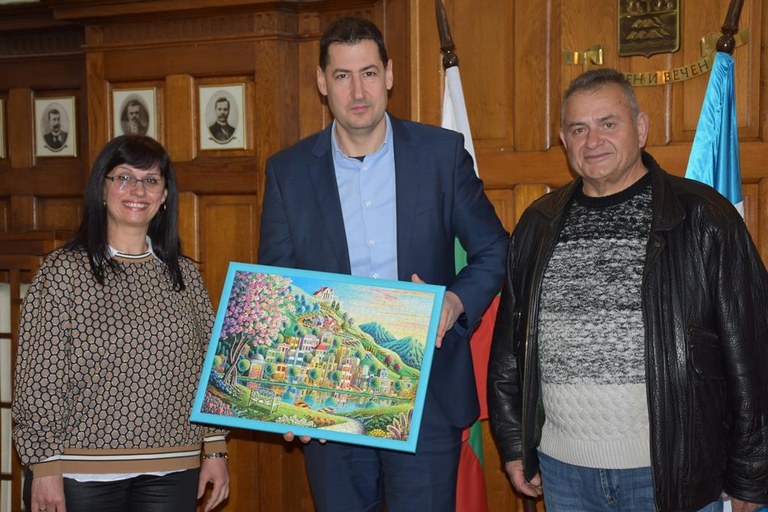 Пъзел, изработен специално от учениците на българското училище „Цар Симеон Велики“ в село Дикеа, обл. Еврос, Република Гърция, получи днес кметът на Пловдив инж. Иван Тотев. Подаръкът му бе връчен от ръководителя на училището Диана Кимпарис и Атанасиус Кимпарис, които днес посетиха общината. Те благодариха на кмета Иван Тотев и на Общинския съвет в Пловдив, които миналата година взеха решение за дарение на средства с цел съхраняване, развитие и разпространение на българския език и култура в Гърция.
