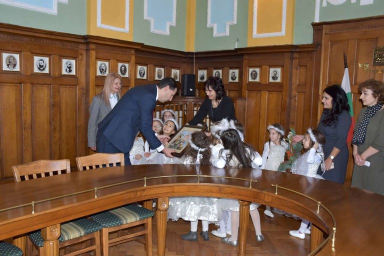 Те поднесоха и специален подарък на кмета Иван Тотев – ръчно изработена картина на Стария град.