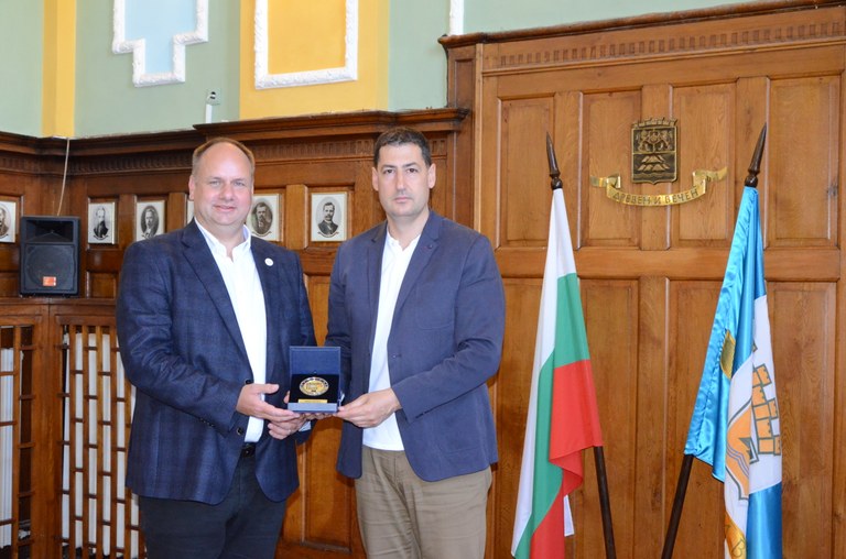 Освен плакет с логото „Заедно“ кметът на Дрезден получи и вратовръзка с логото на Община Пловдив, която той обеща да носи при защитаването на проекта Дрезден – Европейска столица на културата през 2025 година.
