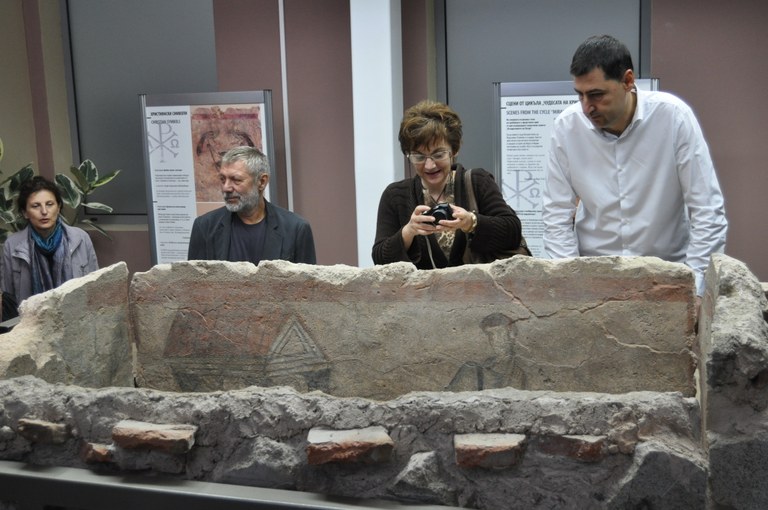 Експонатът бе представен тържествено днес в присъствието на кандидата на ПП ГЕРБ за втори кметски мандат в Пловдив инж. Иван Тотев. По негово предложение Общинският съвет отпусна средства за пълната реставрация на гробницата със стенописите, намерена на ул. „Г. М. Димитров“ при изкопни дейности на ЕВН. Директорът на Археологическия музей Костадин Кисьов благодари за подкрепата на инж. Иван Тотев и на ръководството на дружеството.