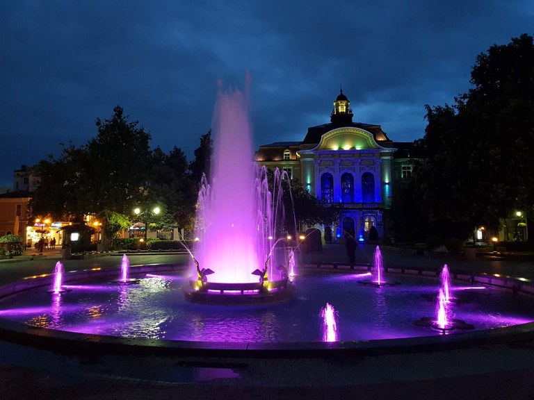 Фонтанът пред общината грейна с ново художествено осветление