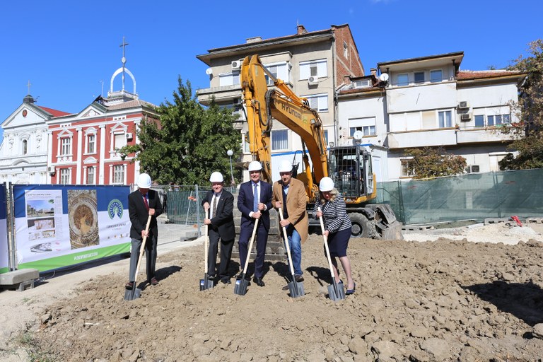 Първа копка на нова детска площадка на едно от най-емблематичните места в Пловдив - Епископската базилика, направиха кметът на Пловдив инж. Иван Тотев, Н. Пр. Ерик С. Рубин - посланик на САЩ, Крис Матлън - председател на Борда на директорите на Фондация "Америка за България", Робърт Дик - председател на Управителния съвет на ЕВН България, Ирена Георгиева, заместник-министър на туризма в присъствието на много официални гости.