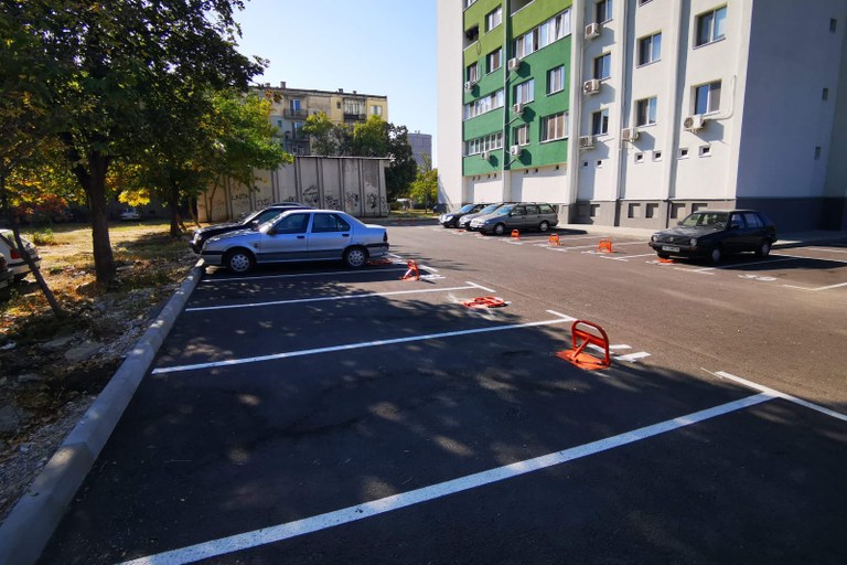 Пространството между двата високи санирани блока е вече напълно обновено. Така зоната, на която преди време имаше около 20 ламаринени гаража, днес място за паркиране могат да си намерят 47 автомобила.