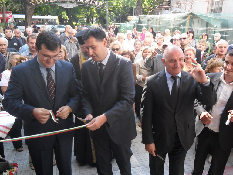 В присъствието на стотици граждани, сред които и много официални лица, кметът на Пловдив инж. Иван Тотев преряза лентата на реконструирания Четвъртък пазара. Той покани да му асистират предишния кмет Славчо Атанасов, при чийто мандат започна строителството, и директора на ОП „Общински пазари” Минко Минков.