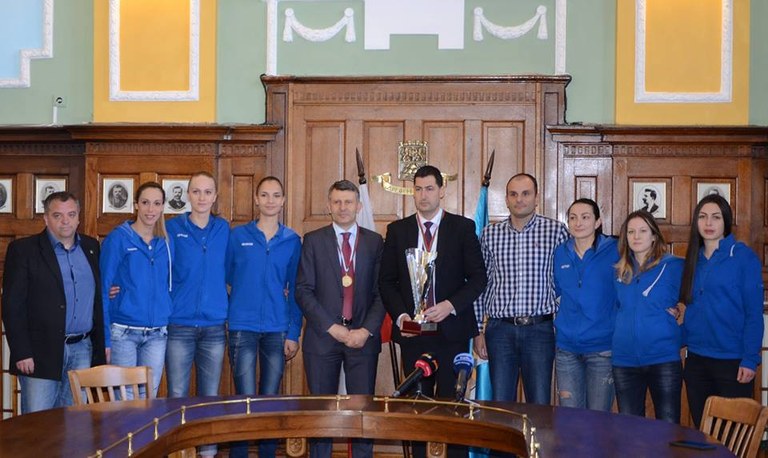 Представители на волейболен клуб „Марица“, който спечели четвърта поредна шампионска титла на България, бяха посрещнати в Община Пловдив от кмета на Пловдив Иван Тотев и ресорния заместник-кмет Георги Титюков. Заедно със своя мениджъра Борис Халачев състезателките показаха победната купа.