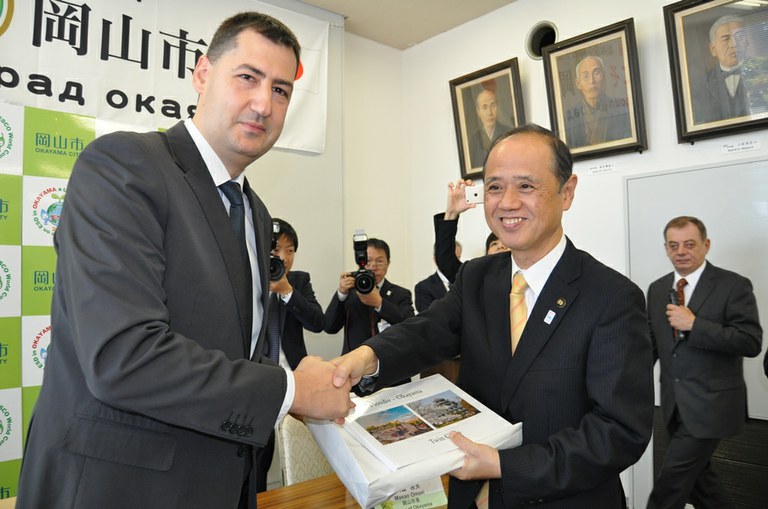 С традиционното „добре дошли“ кметът на Окаяма Масао Омори посрещна пловдивския си колега Иван Тотев и водената от него делегация. Кметът на побратимения на Пловдив японски град подчеррта, че приятелството между Пловдив и Окаяма датира отпреди 42 години. Той поздрави кмета инж. Иван Тотев с избирането на града ни за Европейска столица на културата през 2019-та година.