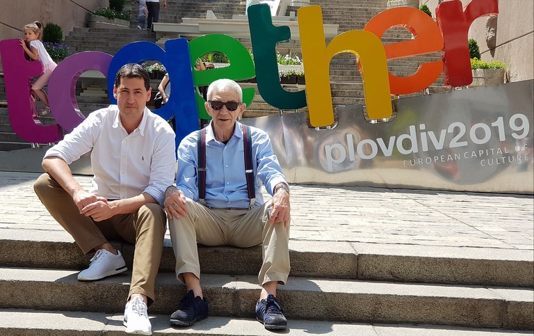Запечатано с приятелска снимка беше и на едно от емблематичните места в Пловдив, любимо на малки и големи, буквите “TOGETHER” на стълбите на Каменица.