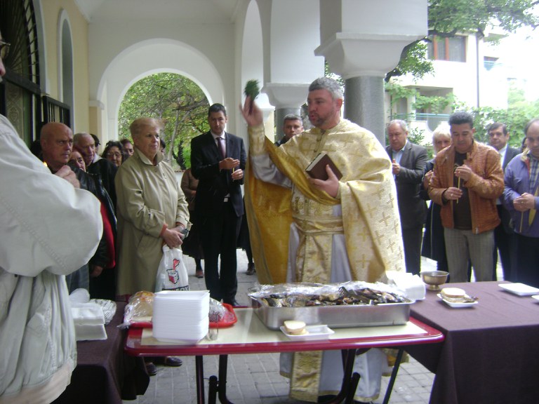 След тържествената служба ритуалната храна бе осветена и раздадена на миряните. На всеки голям празник вие правите благодеяние в нашия храм, каза отец Лазар, който благослови курбана.