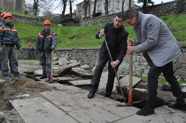 Кметът на Пловдив инж. Иван Тотев направи символичната първа копка на новата панорамна площадка, която се появява на мястото на доскорошно заведение.