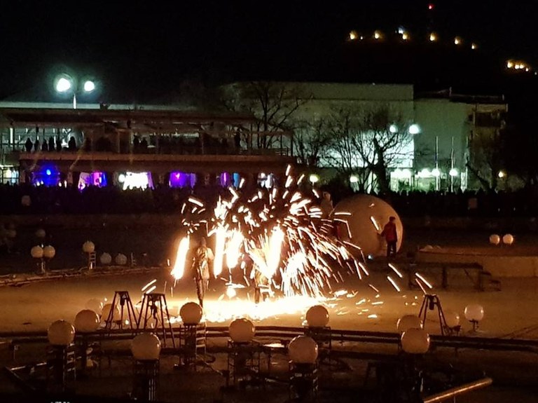 Пловдивчани и гости на града препълниха вечерта на 12-ти януари 2019 г. пространството около Пеещите фонтани в Цар-Симеоновата градина, където се наслаждаваха на огнен спектакъл. Шоуто беше едно от събитията по време на откриващият уикенд на Пловдив като европейска столица на културата. Стотици хора наблюдаваха как артистите рисуваха различни фигури с огън във въздуха, като една от най-атрактивните бе изображението на дракон. Акробати показаха невероятно умения, разхождайки се на кокили.