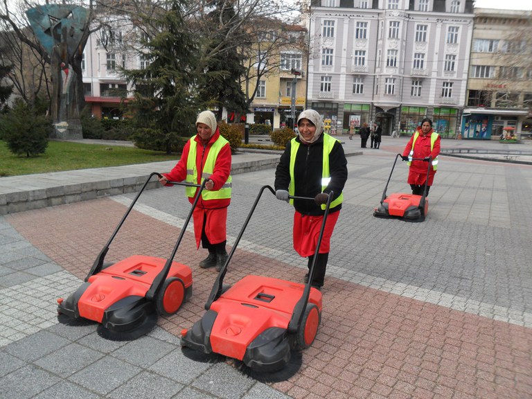 Много от разхвърляния срещу снега пясък е вече пометен и извозен, констатира кметът. Подготвя се поръчка на стойност около 400 хил. лв. за закупуване на нова модерна техника от ОП „Чистота”. Предвидени са 4 мултифункционални мобилни машини, които ще са в състояние да изчистят и най-замърсените места, допълни инж. Тотев. Според него внедрената преди по-малко от седмица нова германска техника за метене, разпределена в центъра и подходящи зони по районите, вече дава добри резултати.