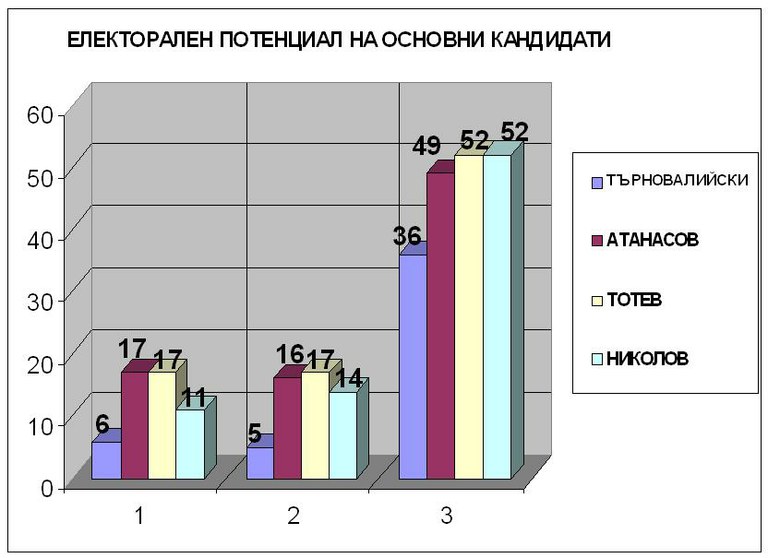 По 17 процента пловдивчани подкрепят и кандидат-кмета на ГЕРБ за Пловдив инж. Иван Тотев, и Славчо Атанасов. Но докато от края на миналата година областният управител е удвоил рейтинга си, сегашният кмет го е смъкнал с около 30 на сто. Шансовете им да спечелят изборите на 23 октомври изглеждат почти равни, но само засега, тъй като кампанията все още не е започнала.