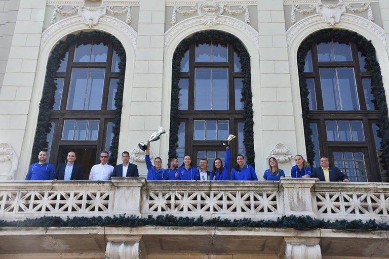 Волейболистките от „Марица“ вдигнаха двете купи от балкона на Община Пловдив