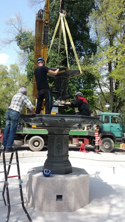 „Оригиналният фонтан е реставриран на 100 процента с всички елементи, които през годините са били унищожени или откраднати. След монтажа ще започнат пробите по водната инсталация, като се предвижда през уйкенда фонтанът да заработи в оригиналния си вид. Това не се е случвало от повече от 50 години“, уточни кметът на Пловдив инж. Иван Тотев. Той изказа специални благодарности на „Реставрация“ АД, както и на Димитър Райчев за личното му участие. Въз основа на предоставените от него архивни снимки фонтанът е ориентиран по начина, по който е бил през 1892 година на възстановения по проекта оригинален Централен вход на парка. В момента на изток от "Деметра" вече е оформено ново пространство със зацветяване и пейки.
