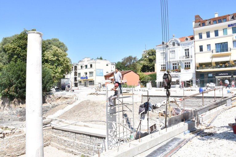Усилено продължава обновяването на площад „Централен“. Вече са поставени три от римските колони от Римския форум.