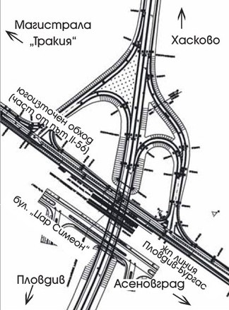 Изграждане на път II-56 „Пътен възел „Скобелева майка" - Път II-86 (югоизточен обход на гр. Пловдив)" от км 96+900 до км 104+033. I-ви етап от км 96+900 до км 98+200 - направление Пловдив-Хасково.