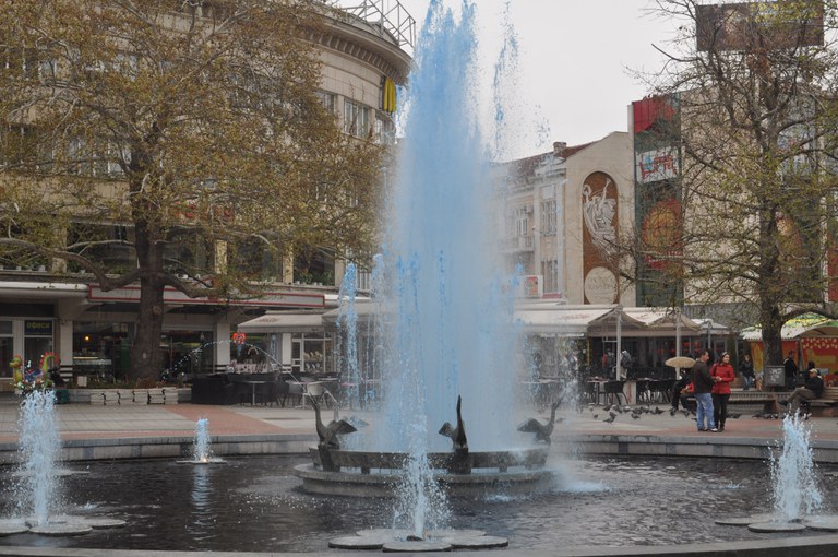 В пловдивско синьо е оцветена водата в шадравана пред Община Пловдив на площад „Стефан Стамболов“ от днес следобед. Само за минути това се превърна в атракция за минувачите по главната улица. Пловдивчани и туристи се спираха за снимка за спомен пред фонтана с пеликаните.